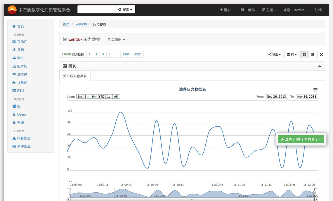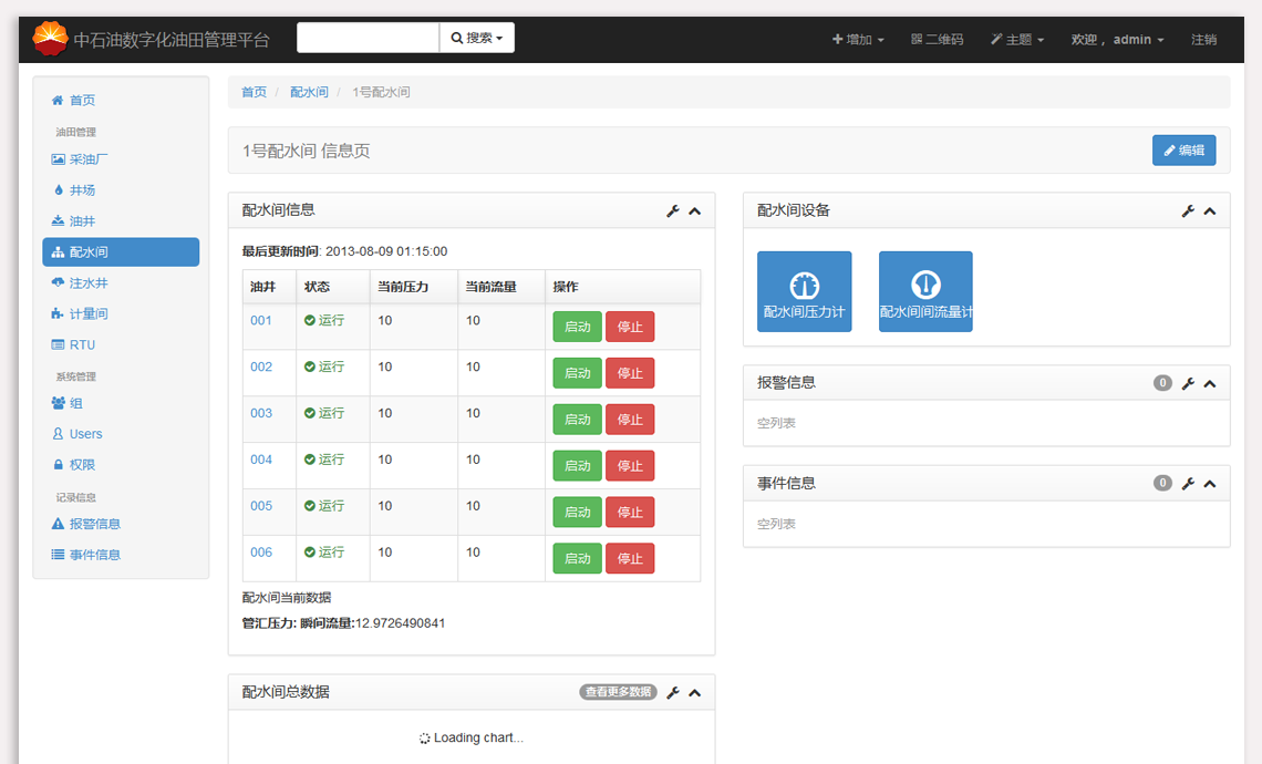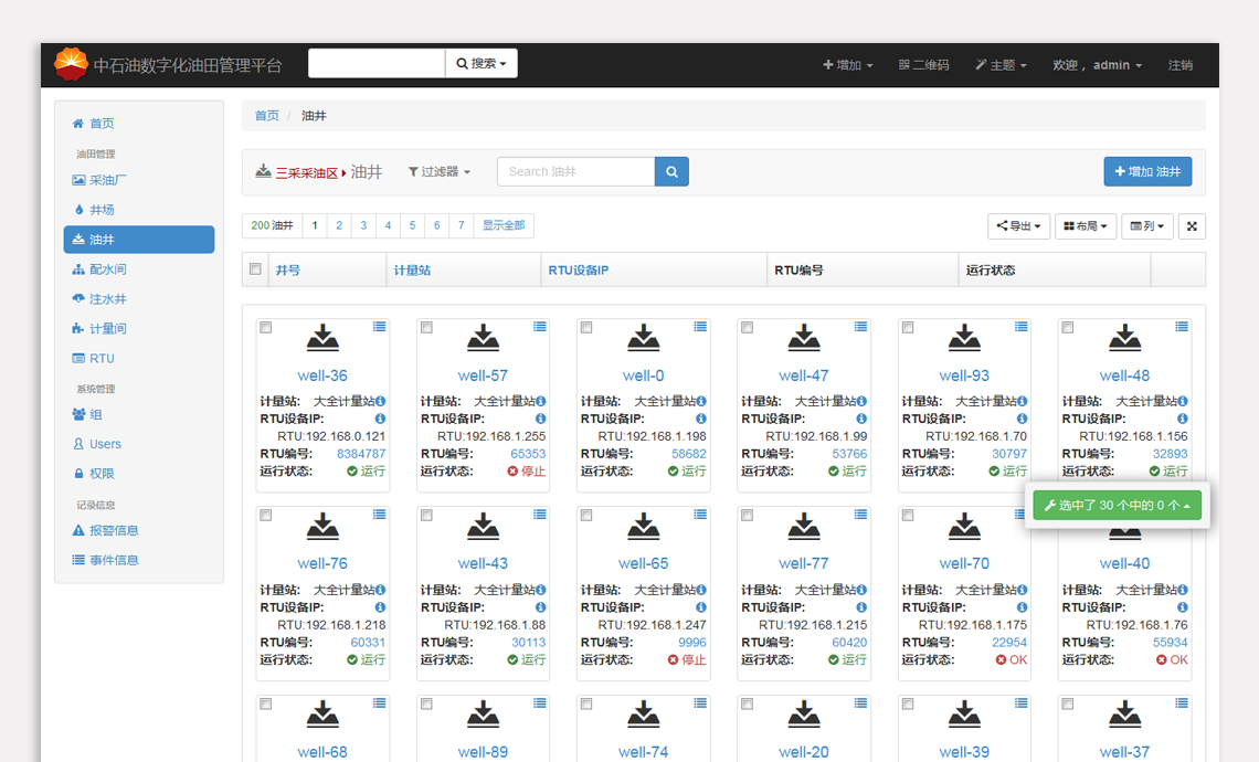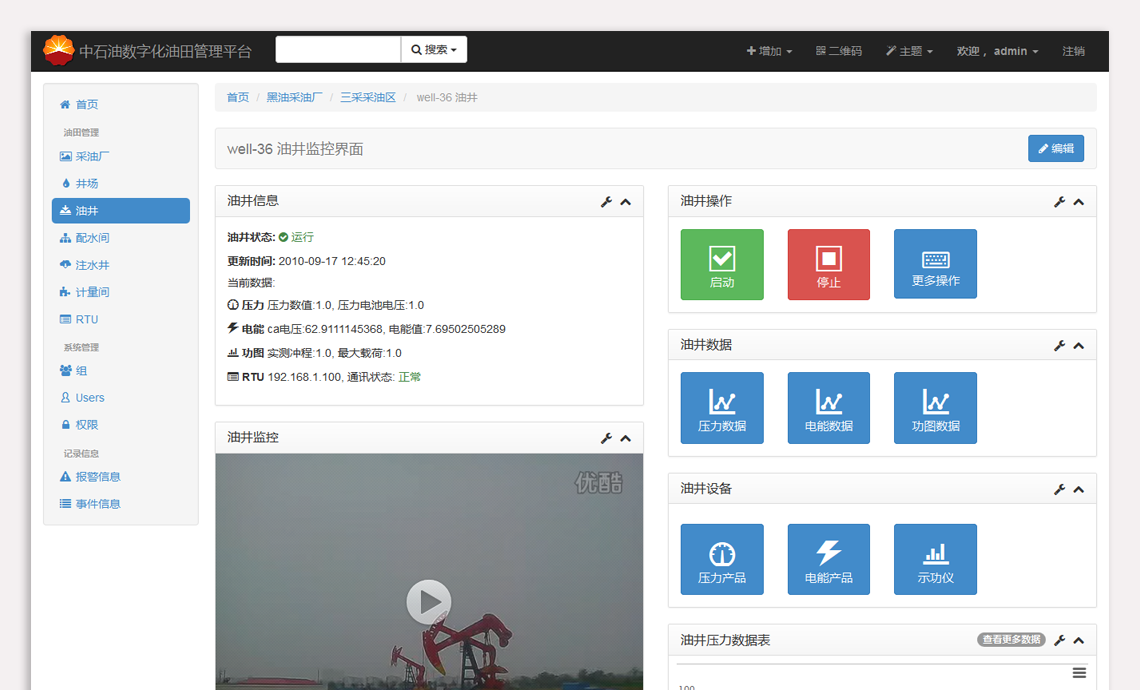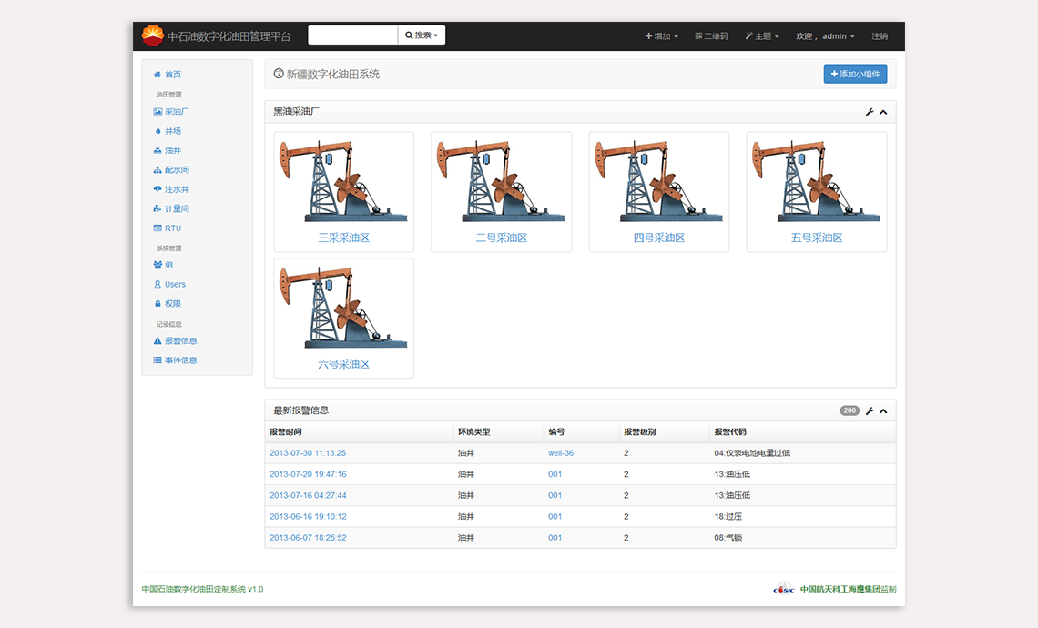 中石油数字化油田管理平台,本系统作为反映油田抽油机井生产情况,在系统安装后,油田管理人员在中心站机房内就可以实时掌握整个藏区内抽油机工作情况及产量,本系统可以全天候数据采集,避免油井无效生产,最大限度节约能源,并能对电泵与抽油机状况、油井生产参数进行分析和提示,提高油井生产效率。从而解决目前人工采集参数不及时、精度低的问题,可以有效实现油井工作状态的远程监控,达到油井生产管理数字化、自动化、网络化的目标,提高油井生产效能。