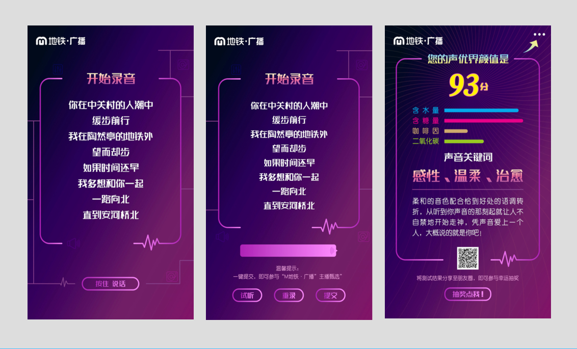 北京 京港地铁 声优主播 选拔活动, 通过微信录音上传音频文件,解析音频信息并给出 评定分数。